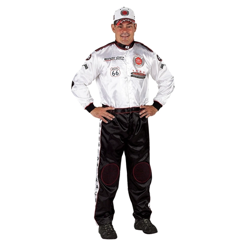 Feel the need for speed? This Champion Racing Suit Adult Costume has got the look! This costume is silky and smooth to the touch. Completely detailed with custom embroidery and logos, a full length zipper, official neck and ankle straps, elastic waistband, and a rear seat pocket. This is sure to raise the checkered flag in everyone.