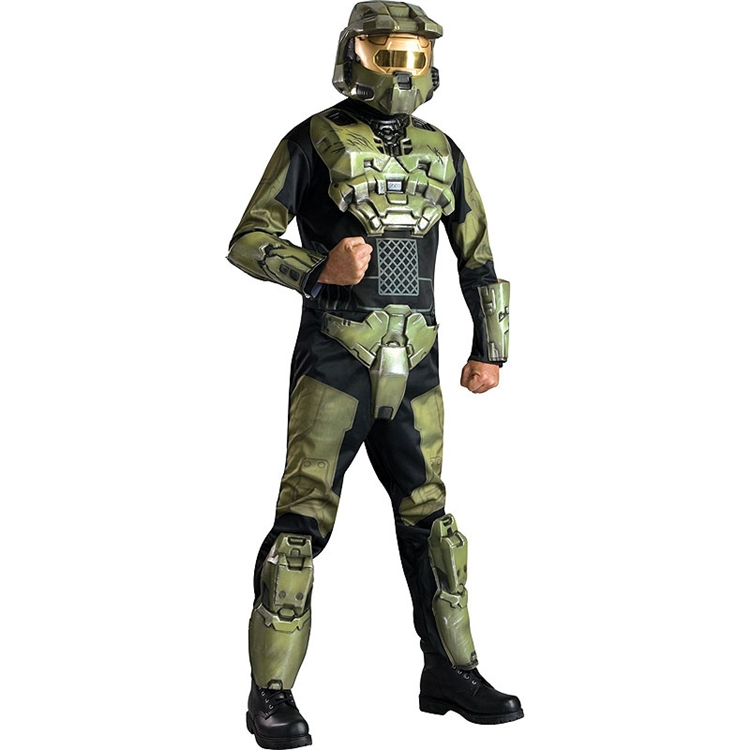 This Deluxe Halo 3 Master Chief Adult Costume includes a jumpsuit with EVA molded armor, two-piece helmet and attached shin guards! This 2 piece helmet features a back piece that hooks onto the front piece to cover your entire head. This deluxe costume was carefully detailed based off the game HALO 3.