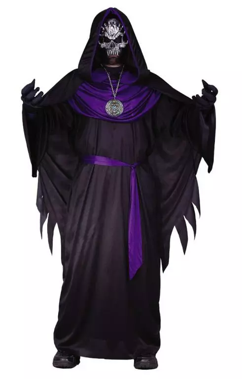 Emperor of Evil! Costume Includes: Robe, hood with attached cape, drape, gloves, belt, mask and medallion.