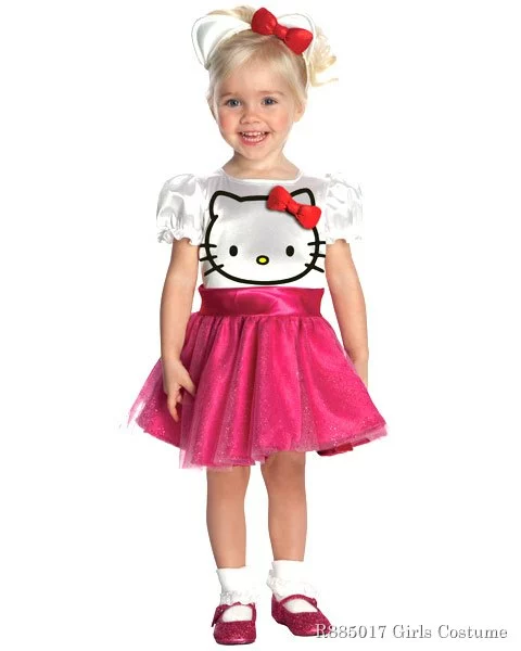 Hello Kitty is a very child friendly character that toddler girls just love so we are proud to offer the new Toddler Hello Kitty Toddler Costume. According the the Sanrio website, Hello Kitty is a bright and kind-hearted girl who is good at baking cookies and loves Mama’s apple pie. Hello Kitty was made without a mouth so the person looking at her can project their own feelings onto the character. We know that your toddler will be delighted to wear the Toddler Hello Kitty Tutu Dress Costume this Halloween. It features a dress with a pink skirt and a white top, printed with Hello Kitty’s picture, a belt and a kitty ear headband with a bow.